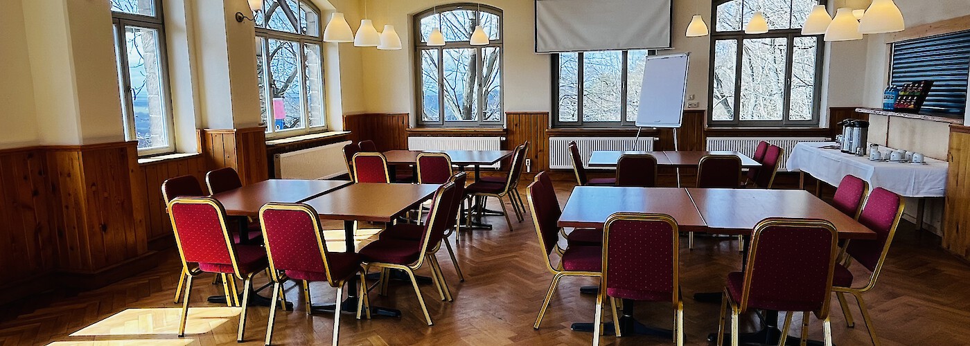 In der Gaststätte direkt gegenüber können die Teilnehmerinnen und Teilnehmer je nach Wunsch über den gesamten Tag verpflegt werden. Gern können wir auch direkt im Seminarraum Imbiss und Getränke bereitstellen.