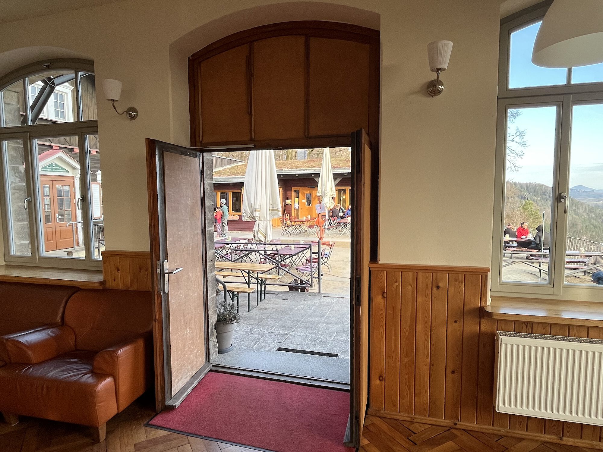 Durch die großen Fenstern an drei Seiten, mit direktem Blick über die berühmte Aussicht und in die umgebende Natur, ist der Raum sehr hell und freundlich.